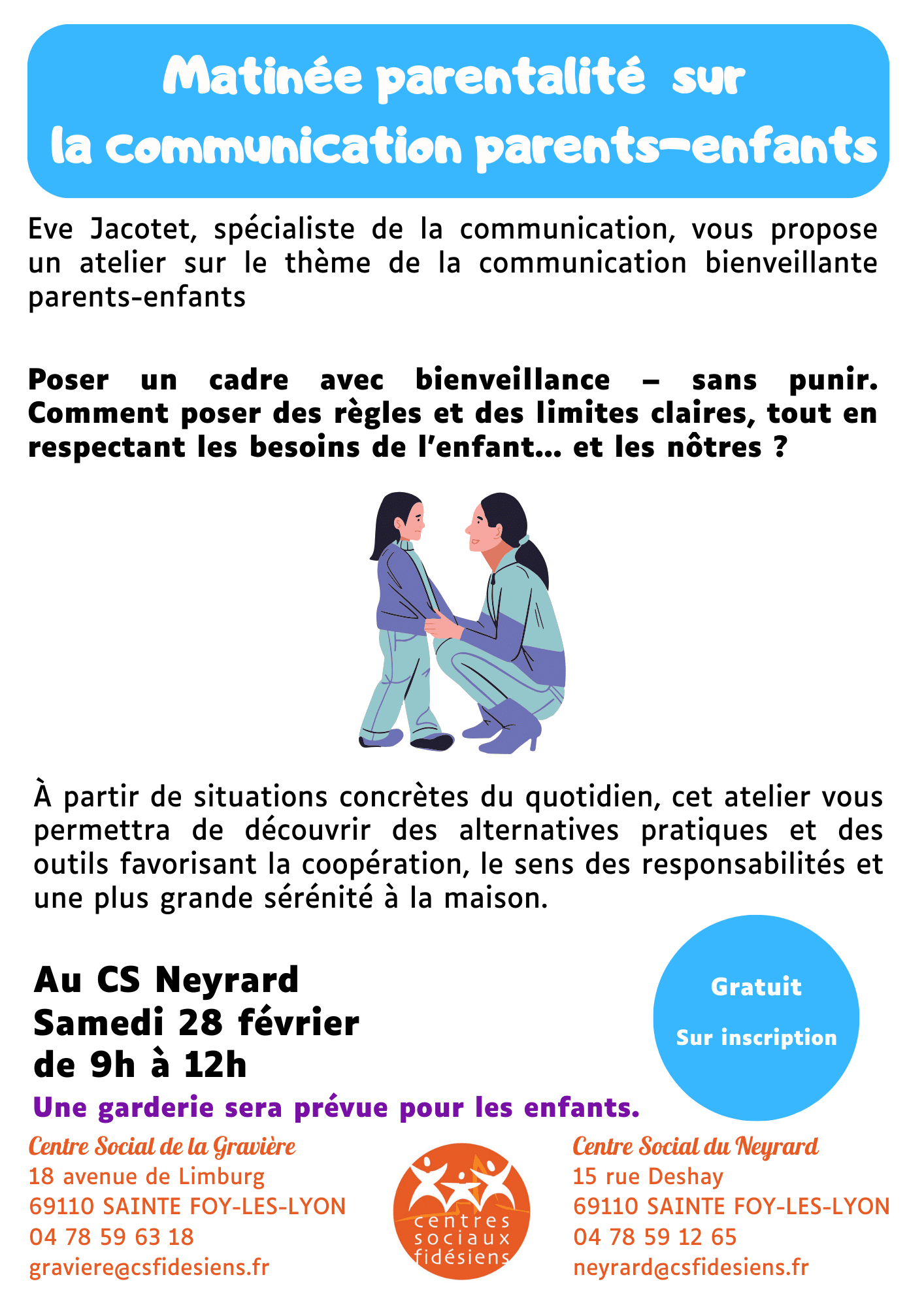 Cette matinée propose aux parents un temps pour mieux comprendre ce que vivent les enfants dans leurs relations (rivalités, jalousies, place de chacun), afin de les aider à gérer les conflits et à construire des relations plus sereines et respectueuses.